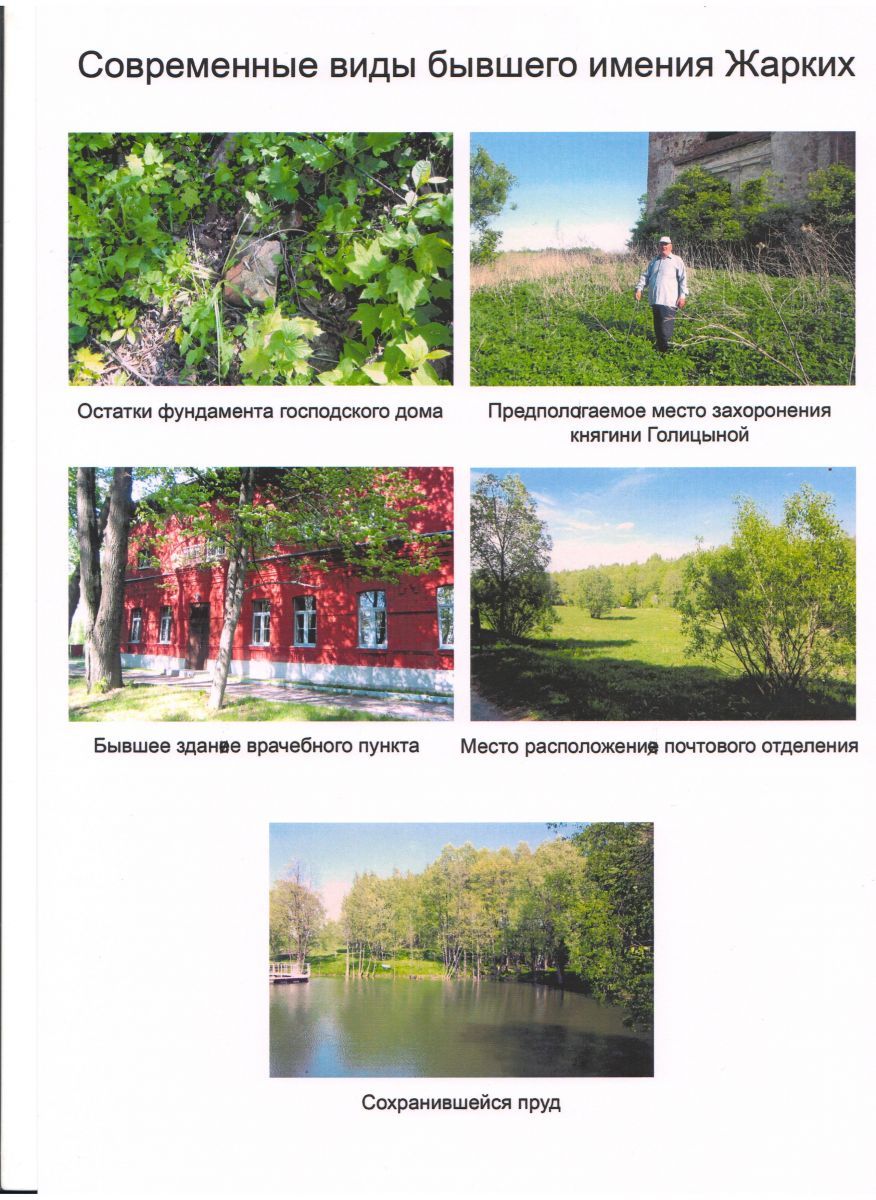 Остается не выясненным вопрос, кому принадлежало имение Жарки после смерти Елизаветы Петровны Голицыной. Работа по этой теме будет продолжена.